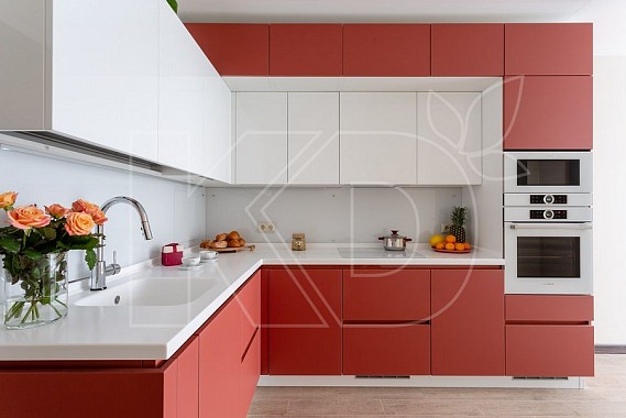 Любители современных решений оценят современные угловые кухни элит класса, характеризующиеся яркими цветами и хромированными деталями. Фасады в этих моделях часто выполнены из матового стекла с пескоструйным рисунком или витражей.