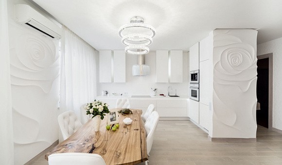 • Визуальное расширение площади. Белые кухни такого типа отражают естественный свет, тем самым зрительно увеличивая пространство.
