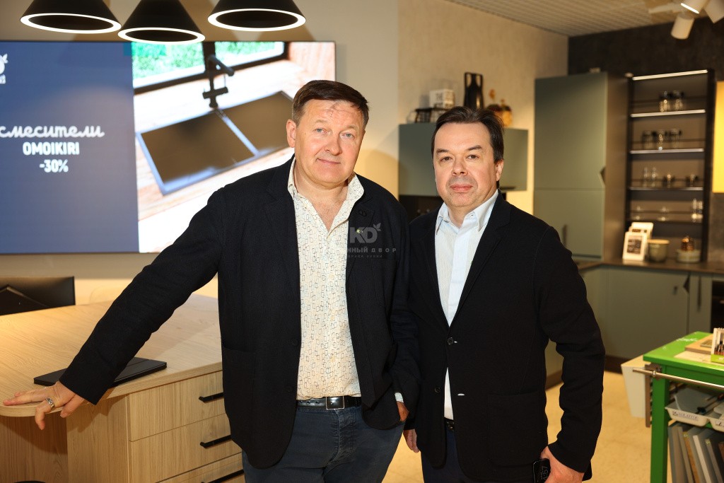 Торжественную часть открыл правообладатель бренда «Кухонный Двор» и идейный вдохновитель — Юрий Викторович Титов. Следом выступили: исполнительный директор и руководитель департамента продаж Артёмов Александр Владимирович, руководитель дизайн-студии Прошина Анна Николаевна и управляющая салоном КД «Можайский» Лепехо Елена Анатольевна.