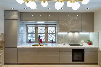 При необходимости вы можете заказать гарнитур со встраиваемой техникой. Такой вариант позволит рационально использовать каждый сантиметр пространства, избегая любых недочетов, связанных с размещением бытовых приборов.
