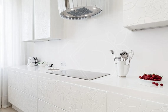 Кроме образцов, представленных в каталоге, бренд может изготовить кухню с декорированием глянцем и фрезеровкой на заказ по созданному с клиентом дизайн-проекту.