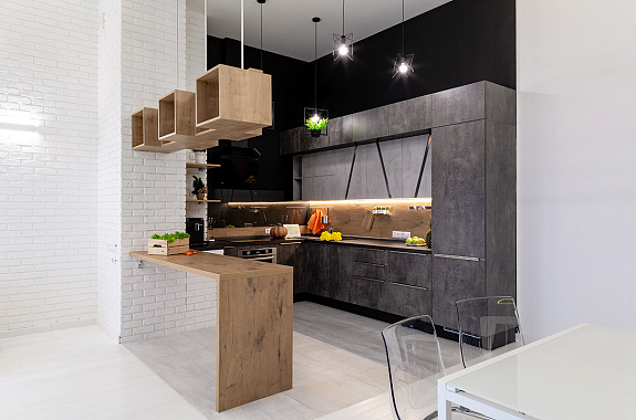 • Лаконичность: Чистые линии позволяют кухне гармонично вписаться как в лофт, так и в неоклассику.