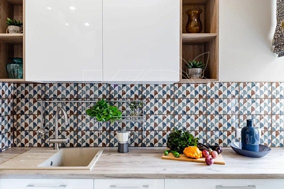 В небольшом пространстве лучше использовать природные материалы. Стены покрасить и отделать панелями из дерева. Полы на кухне уложить массивом, покрыть лаком и покрасить молочной краской. Как вариант – использовать в качестве напольного покрытия керамогранит, имитирующий натуральный камень, или ламинат.