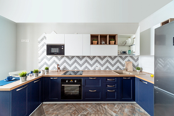 Отдельно стоит отметить то, что всем желающим сбросить вес диетологи рекомендуют активно включать синий в кухонное пространство. Считается, что этот цвет снижает аппетит, обеспечивает более быстрое чувство насыщения и удовлетворенности от еды.