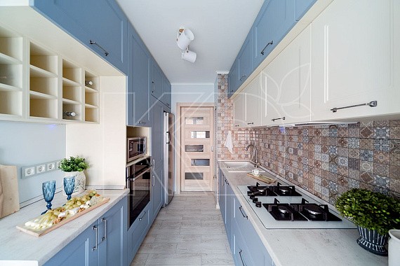 Голубой оттенок универсален и вписывается в кухни практически всех стилей, но некоторые направления буквально созданы для него: