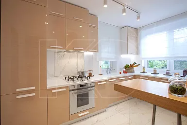 Столешницы из искусственного камня красивы, но все знают, что при их использовании неизбежны мелкие царапины. Тем не менее, заказать кухню по индивидуальным размерам с такой столешницей будет отличным решением.