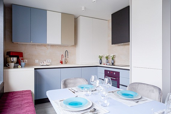 «Американские» кухни в России встречаются, пожалуй, столь же редко, сколь и «японские». Впрочем, это не значит, что их нет вовсе. В коллекции КД, например, есть модель, которая выполнена именно в «звёздно-полосатой» стилистике. Её зовут «Хельга», и она полна смелых, необычных решений!