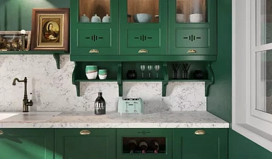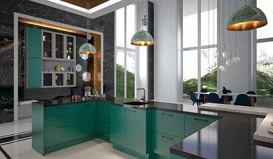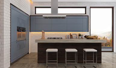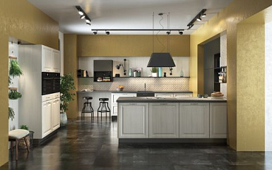 На первом этапе необходимо выбрать цвет стен, потолка и пола. Понять, какими будут фасады гарнитура – глянцевыми или матовыми, плоскими или филенчатыми.