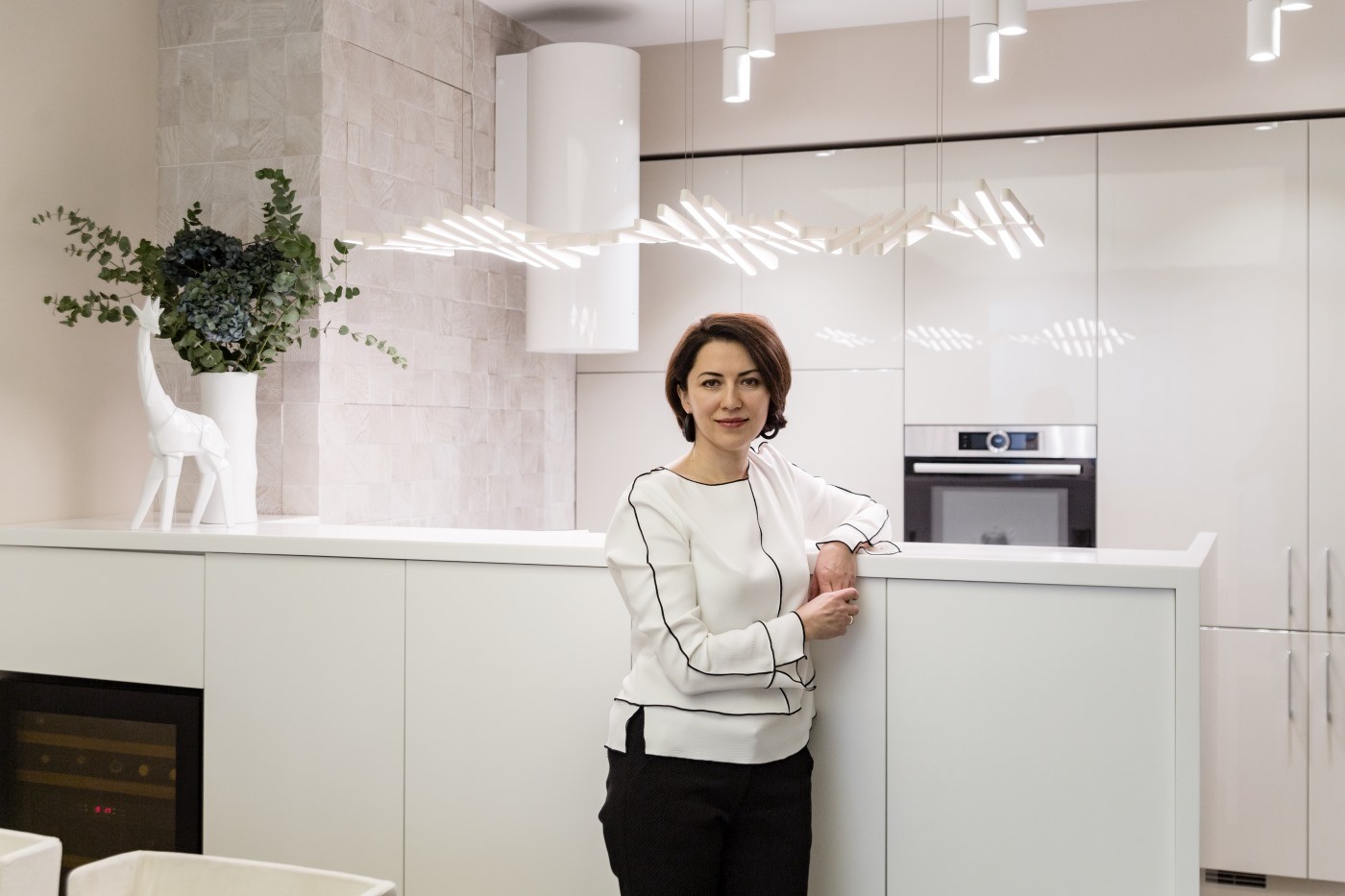 Все инструменты для создания современной красоты даёт эко-стиль. Сегодня он диктует наиболее свежие идеи в области оформления жилых интерьеров. Взять лучшее от природы и соединить это с высокими технологиями — что может быть оригинальней? В квартире дизайнера Ирины Фахрутдиновой гостиная, совмещенная с кухней, задумывалась именно в эко-ключе. Персональный дизайн-проект Ирины изящно воплотила в жизнь бренд «Кухонный Двор». Так в пару к строгому, светлому и невероятно уютному гарнитуру «Фаворит» мы создали подвесные шкафы в ТВ-зоне.
