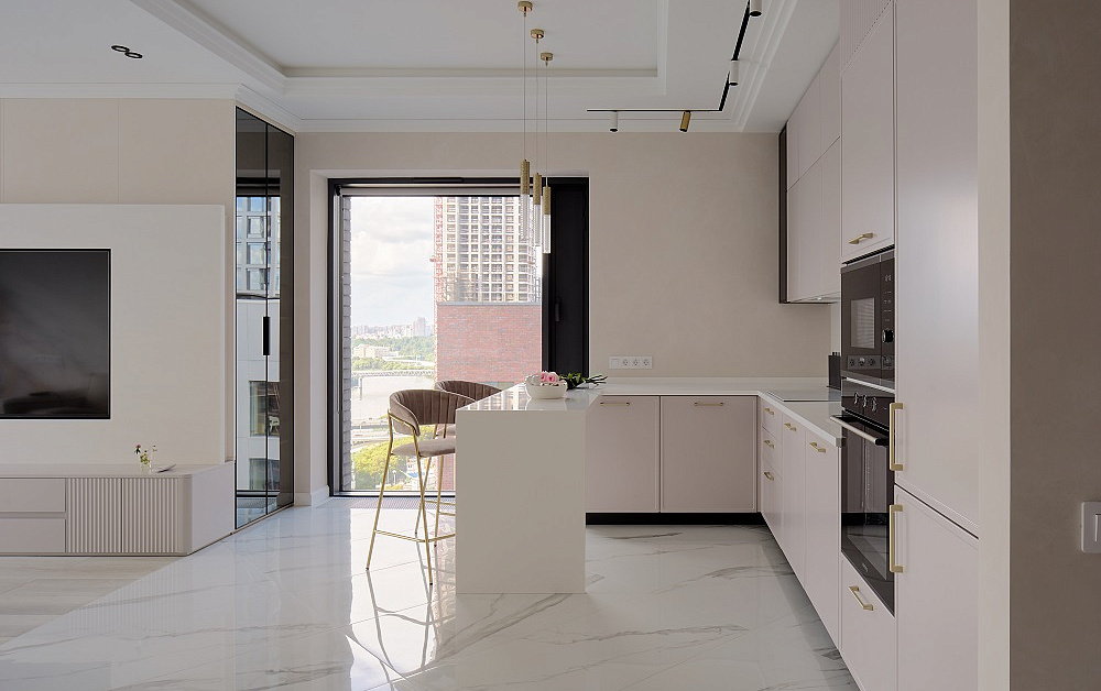 Эргономика этой кухни позволяет творить кулинарные шедевры с магической лёгкостью! «Джейн Арт» Сергея Сафронова имеет удобную П-образную архитектуру, а также немало аксессуаров и систем хранения.