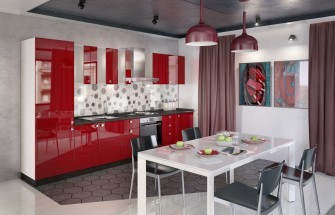 внимание на особенности помещения, в котором она будет располагаться. Для небольшого пространства лучше выбрать гарнитур, в котором присутствуют лишь определенные элементы алого оттенка. Это могут полки, цоколи или столешница. Благодаря такому подходу в помещении не возникнет ощущения перегруженности.