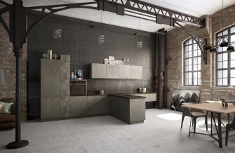 Фасады такого гарнитура отличаются гладкостью, отсутствием лишних деталей, наличием элементов из стекла и стали.