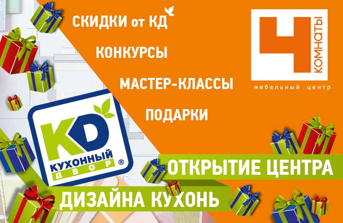 ТЦ «4 комнаты» и раньше был центром притяжения любителей модного дизайна. А теперь он станет лучшим в Рязани местом для покупки новой кухни! 15 февраля Вы убедитесь в этом лично! Открывается Центр кухонного дизайна, а это значит, что Вас ждут: