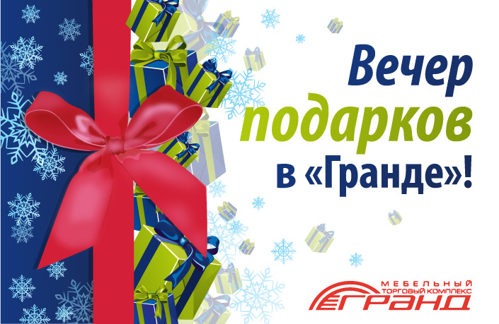 12 января в МЦ «Гранд» в Химках состоялась кульминация большой новогодней распродажи! Знаменитый мебельный центр проводил розыгрыш огромного количества ценных подарков, а также сертификатов на общую сумму 500 000 рублей! Участником розыгрыша мог стать любой посетитель МЦ «Гранд», получивший специальный купон в период распродажи - с 21 декабря по 12 января включительно!